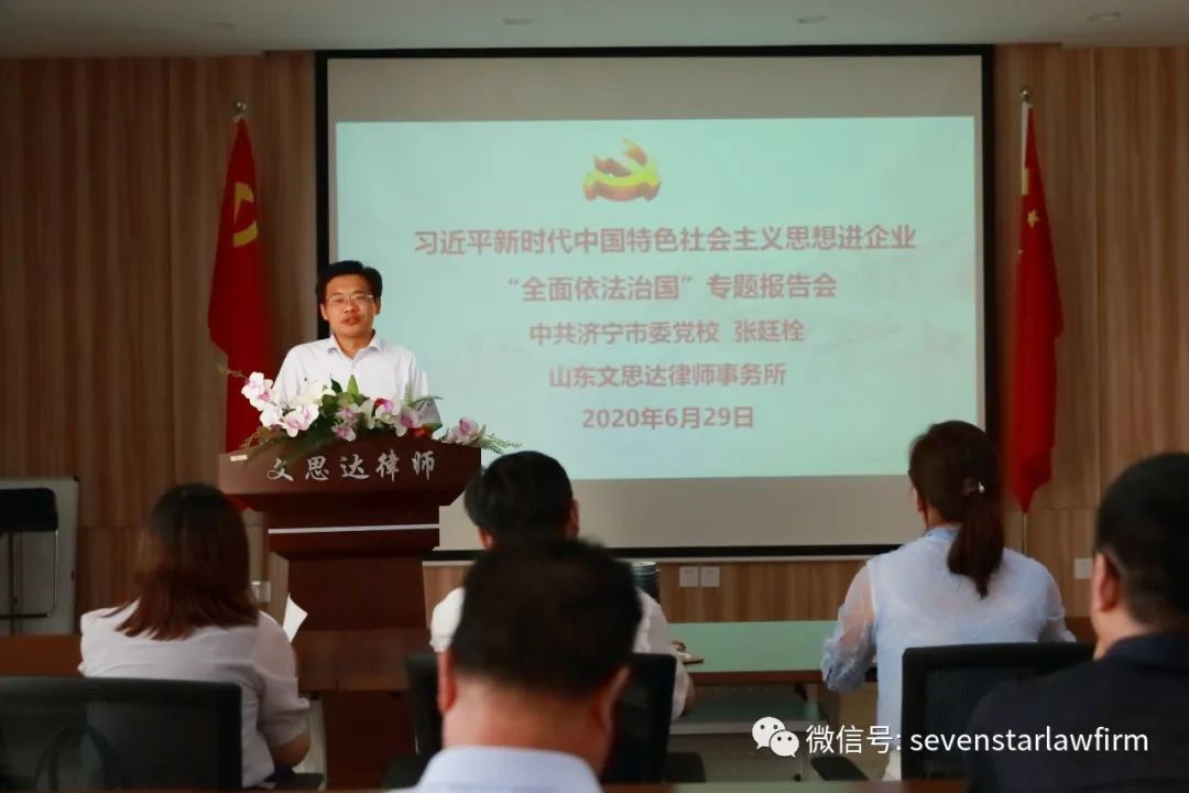2020年(nián)6月(yuè)29日(rì)下(xià)午,中€$共濟甯市(shì)委黨校(xiào)黨委απ§"委員(yuán)、教育長(cháng)張廷栓一(yī≤☆®€)行(xíng)六位法律教研專家(jiā)莅臨→≥γ文(wén)思達律師(shī)事(shì)務所調研交流民(•φ₽₹mín)法典宣講活動。文(wén)思達律師(sh÷≤$γī)事(shì)務所主任陳士乾律師(shī¶')、執行(xíng)主任魏魯甯律師(sh¥ī)及文(wén)思達宣講團14位律師(shī)熱(rè)情接待了(le)'±&專家(jiā)團一(yī)行(xíng)。調研交流會(huì) ¥議(yì)由本所執行(xíng)主任魏魯甯律師(shī)主持,濟¶甯市(shì)司法局律師(shī)工(gōng)作¶≠(zuò)科(kē)科(kē)長(cháng)程衛華應邀參加了(÷σ↕le)本次調研交流。